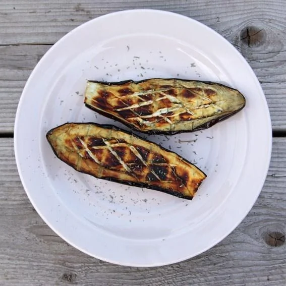 Баклажаны на гриле с чесноком, лимонным соком и тмином