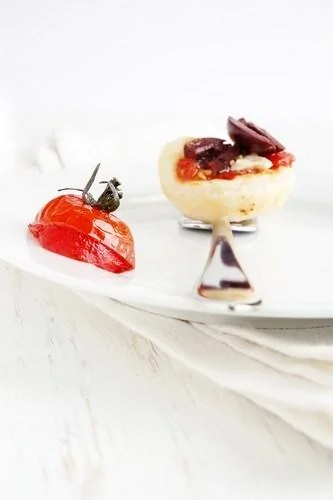 ШАГ 3 Выложите половину черри в формы, затем положите слой нарезанных вяленых томатов и снова черри. Накройте фольгой и выпекайте 1 час.
