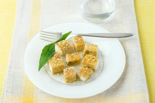 Теплый тофу под острым чесночным соусом