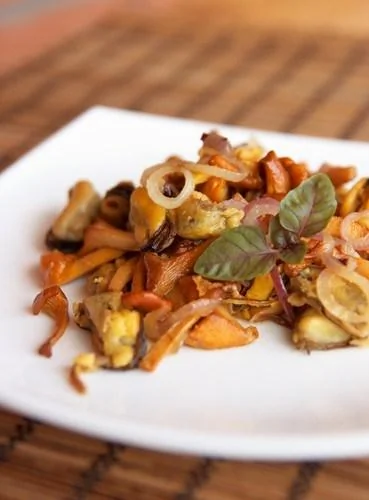 Жареные в духовке шиитаке, портобелло и шампиньоны с чесноком и розмарином