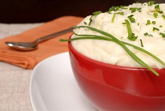 ШАГ 3 Разомните картофель толкушкой или протрите через сито. Добавьте сливочную массу и хорошо перемешайте, слегка взбивая. Посолите и поперчите белым перцем. Подавайте немедленно.