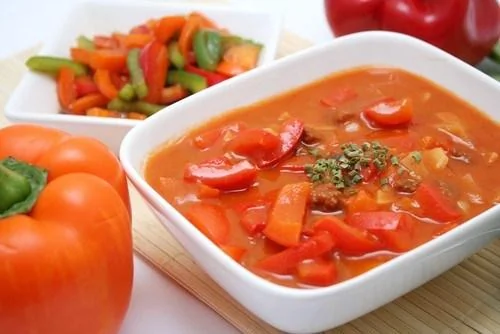 Тушеные разноцветные перцы с тимьяном и чесноком