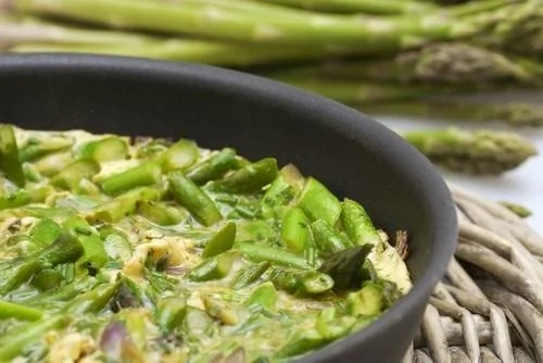 ШАГ 3 Положите на сковороду предварительно очищенную спаржу и готовьте около 5 минут. Влейте взбитые яйца, готовьте на среднем огне 3 минуты, затем поставьте в духовку и запекайте 15-20 минут до золотистого цвета.