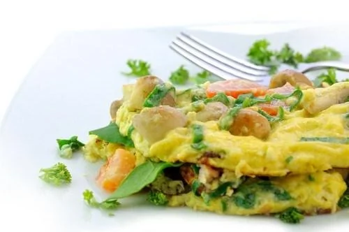 Ингредиенты для приготовления Омлет с начинкой из грибов, шпината и феты: