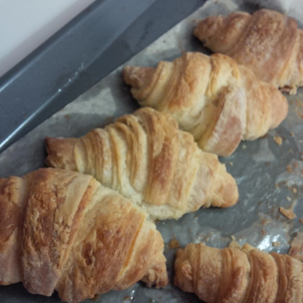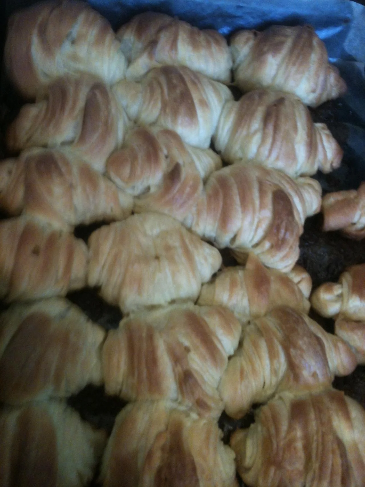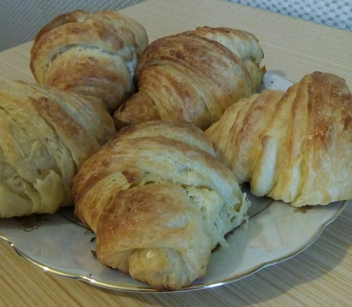 ШАГ 5 Каждый треугольник надрежьте с широкой стороны и, начиная от нее, сверните круассан. Переложите круассаны на противень, застеленный бумагой для выпечки, накройте салфеткой и оставьте минут на 20. Теперь точно последние шаги, с которыми справится каждый. Духовка разогрета до 180 градусов. Вы же тем временем смазываете круассаны кисточкой, обмакивая ее в молоко или можно в яйцо. Печь 25–30 минут до золотистого цвета.