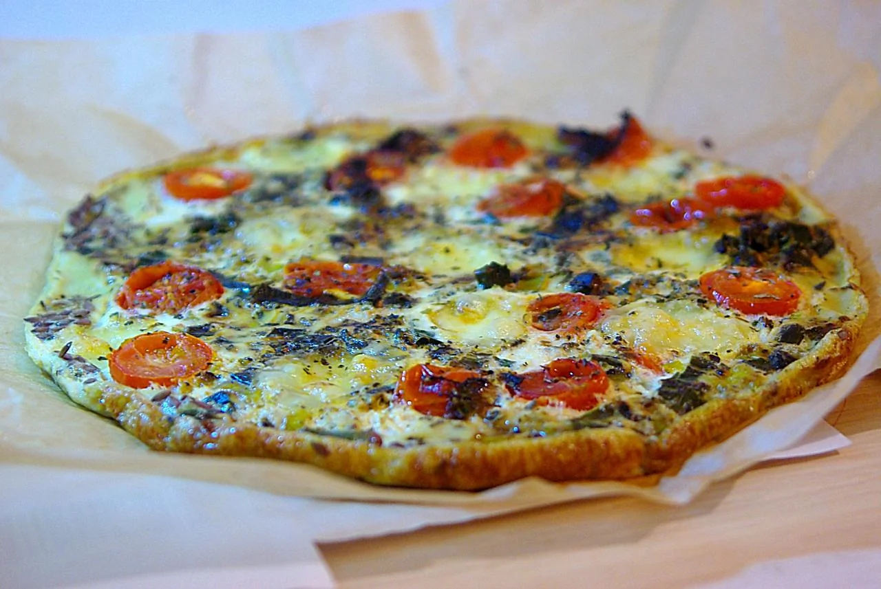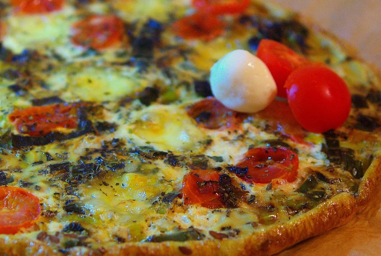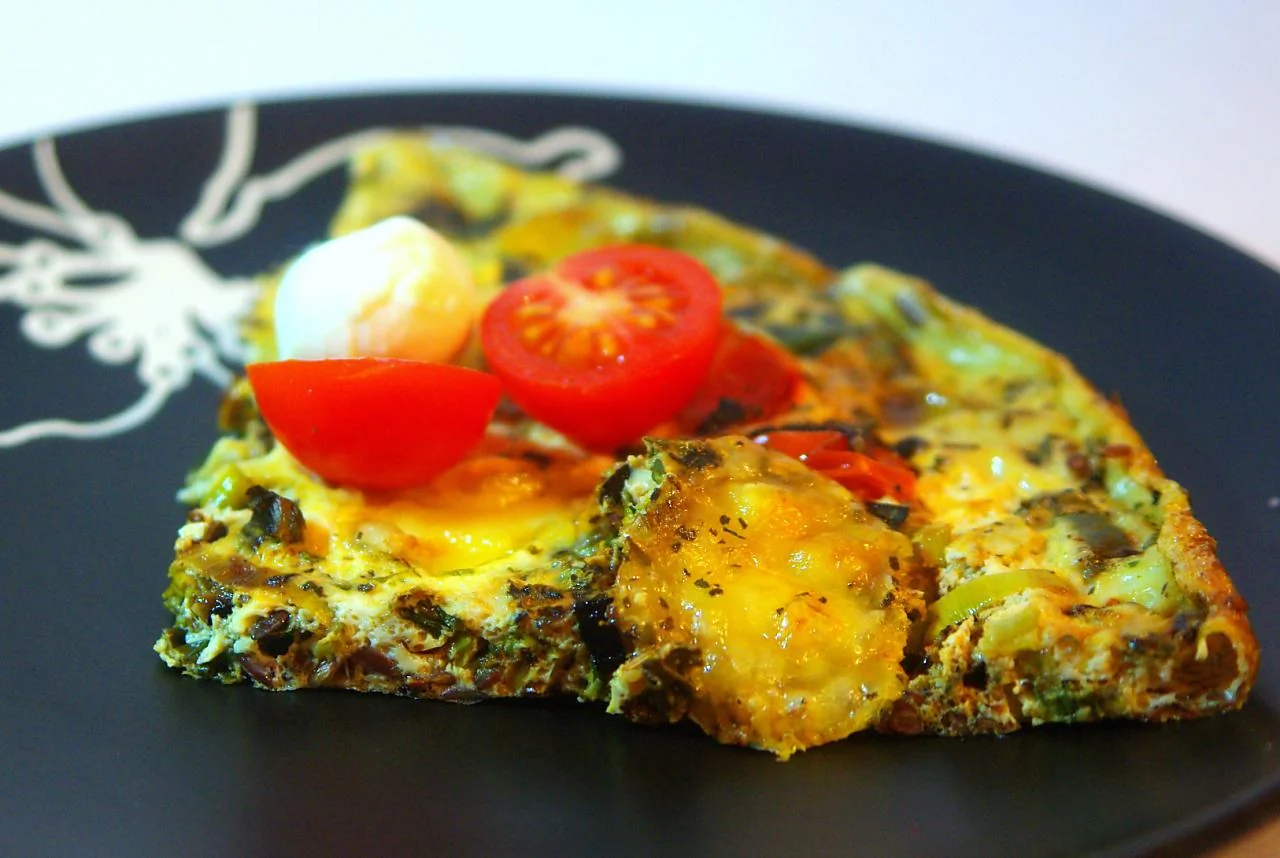Фриттата с пореем, томатами и козьим сыром