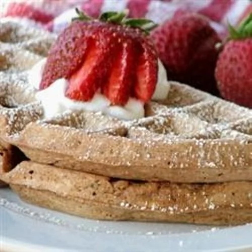ШАГ 3 Сбрызнуть разогретую вафельницу растительным маслом. И вылить смесь на горячую вафельницу. Готовить вафли до золотисто-коричневого цвета. Подавать горячими с соусом. Можно украсить любыми ягодами.