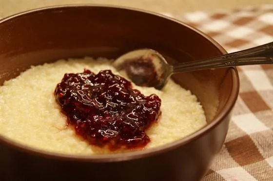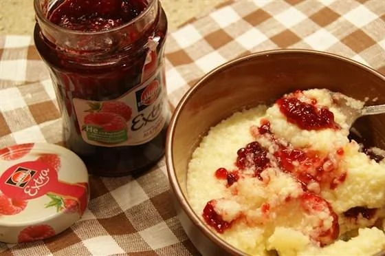 Пшенная каша с малиновым джемом