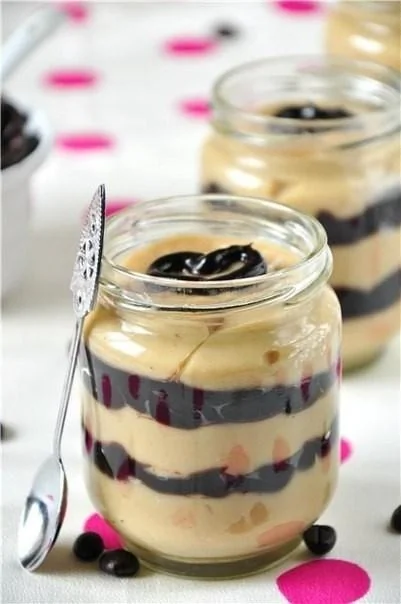 ШАГ 3 Разложите по креманкам манный пудинг и шоколадный соус поочередными слоями. Накройте пищевой пленкой и отправьте в холодильник на ночь.