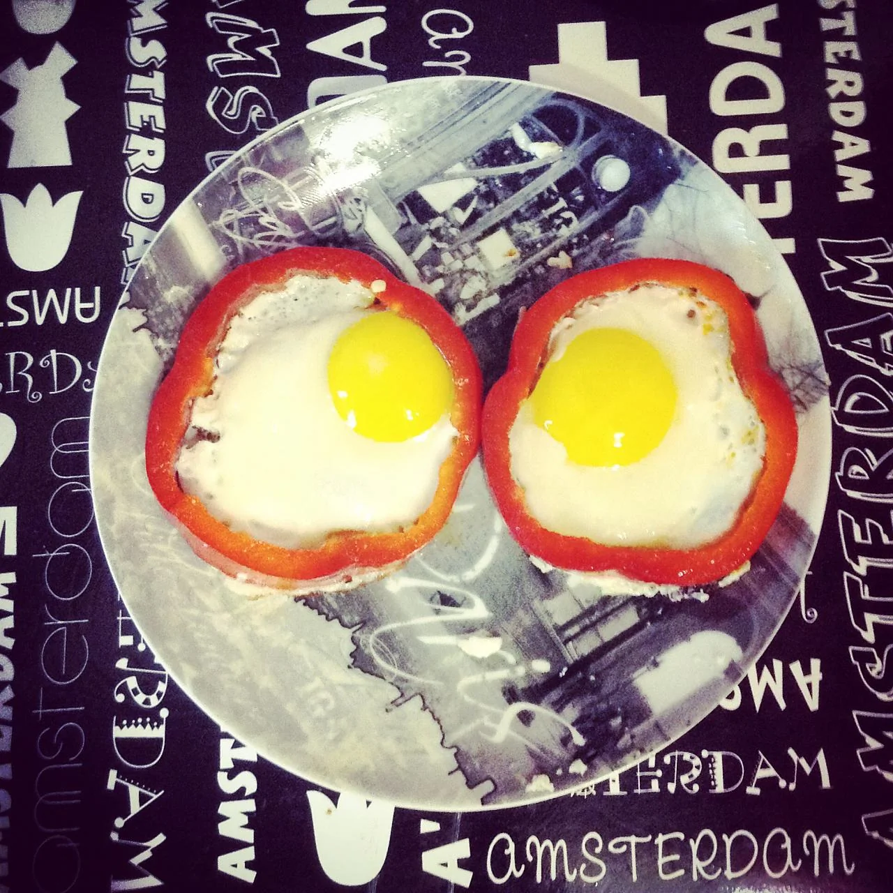 ШАГ 2 Выложить на раскаленную сковороду, политую подсолнечным маслом, 3 кольца перца.