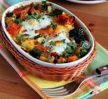 Яйца, запеченные с овощами