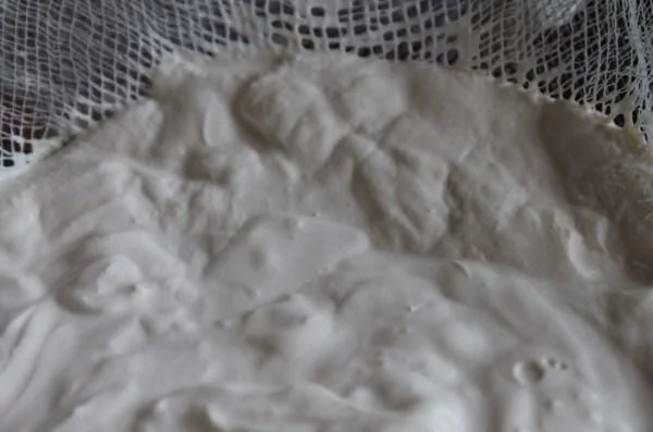 ШАГ 1 Отвешиваем сметану на марле не меньше 6 часов (я так вообще ее продержал всю ночь и полдня). С 700 грамм сметаны у меня вытекло чуть больше 100 грамм сыворотки.