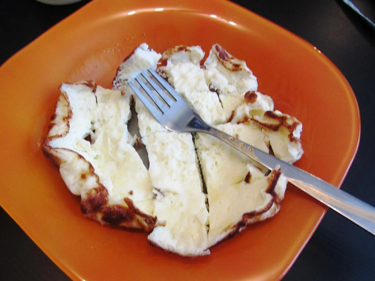 ШАГ 5 Выливаем яйца на предварительно разогретую сковороду со сливочным маслом, накрываем крышкой и жарим до готовности не переворачивая на маленькой камфорке при среднем огне. Сверху омлета будет что-то вроде пенки, но не переживайте, он все равно готов.