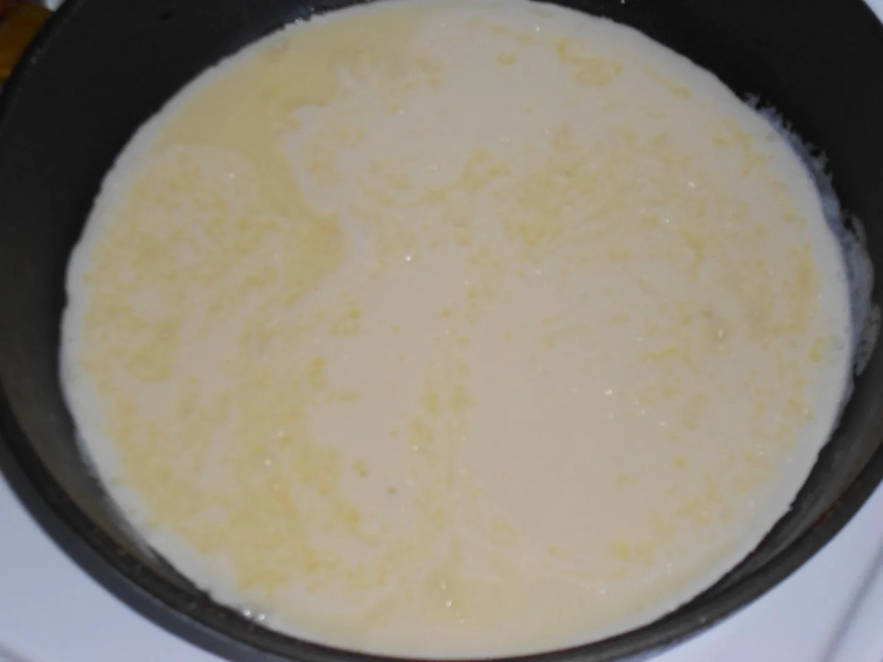 ШАГ 2 В первую очередь взбиваем желтки (иначе белки успеют осесть ). В желтки перед взбиванием добавляем молоко (в расчете половинку скорлупы яйца наполняем молоком на 1 использованое яйцо, то есть на 5 яиц 5 половинок скорлупы молока). И всыпаем просеянную муку. Взбиваем несколько минут миксером.