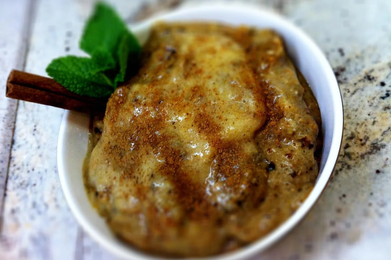 Утренний мусс из банана и ореховой пасты с корицей