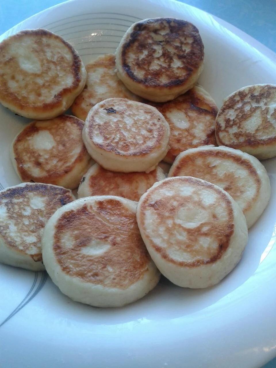 ШАГ 2 Растопить сливочное масло на сковородке, выкладывать с помощью ложки на сковородку и выпекать в виде небольших плоских лепешек на среднем огне до появления нежной золотистой корочки. По желанию, возможно положить чуть больше муки. Я не кладу, так как тогда творог будет загустевать и давать вкус муки. При двух ложках муки сырники получатся достаточно мягкие и их может быть сложно переворачивать на сковороде, поэтому попробуйте накрыть их крышкой во время жарки на обеих сторонах.