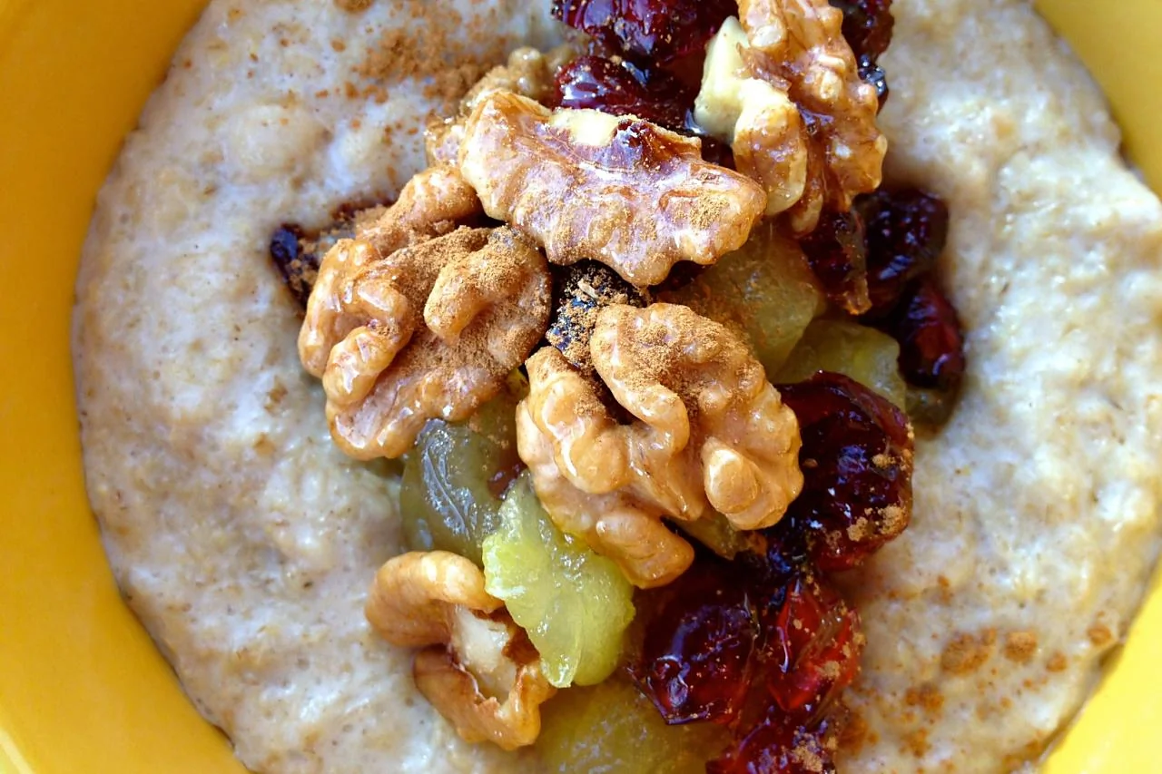 Овсяная каша с яблоком, клюквой и грецким орехом