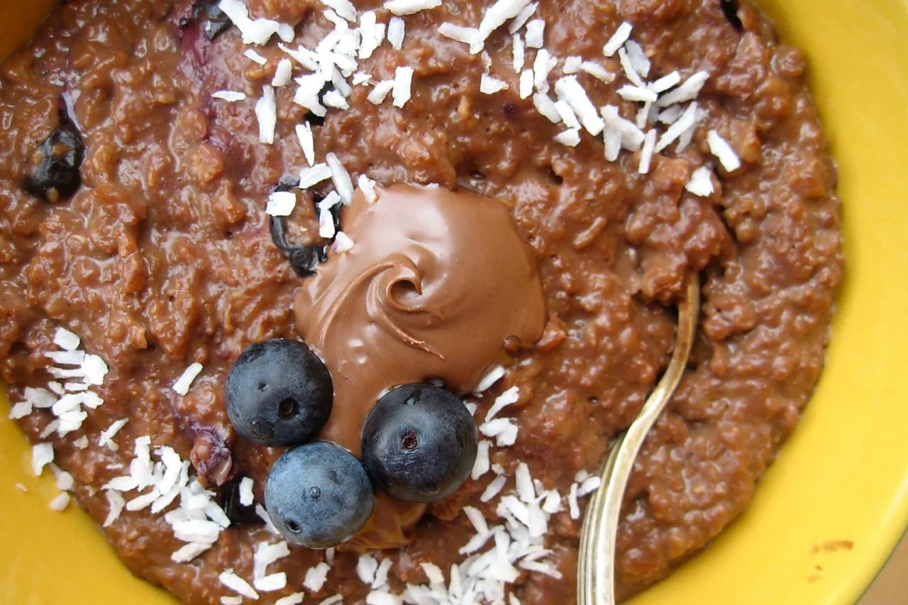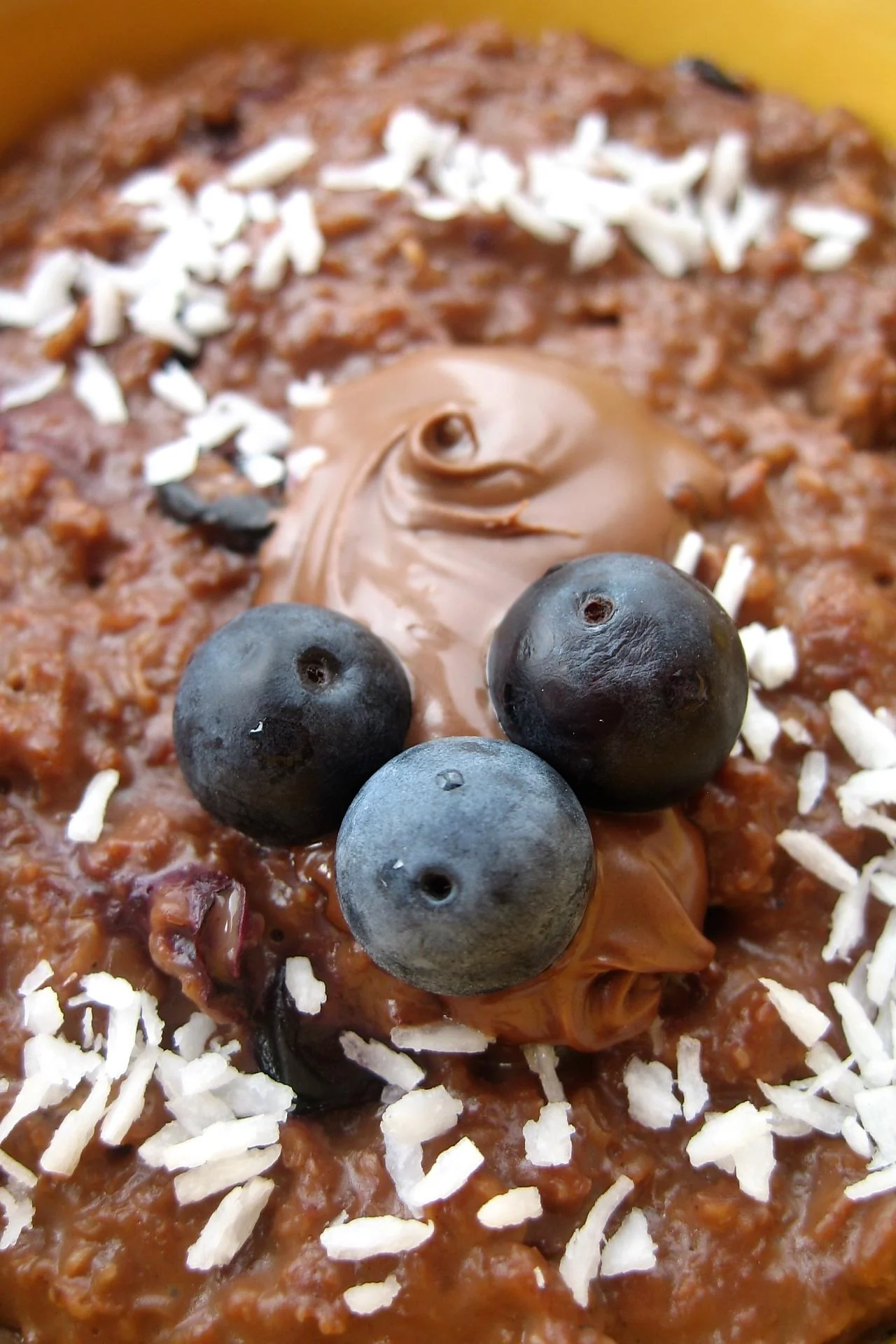 Овсяная каша с шоколадом, голубикой и кокосовой стружкой