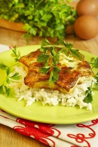 ШАГ 3 Как только фриттата будет готова с одной стороны, выложить ее на большое блюдо. На сковородку добавить кусочек сливочного масла и дожарить фриттату с другой стороны. Сразу подавать.
