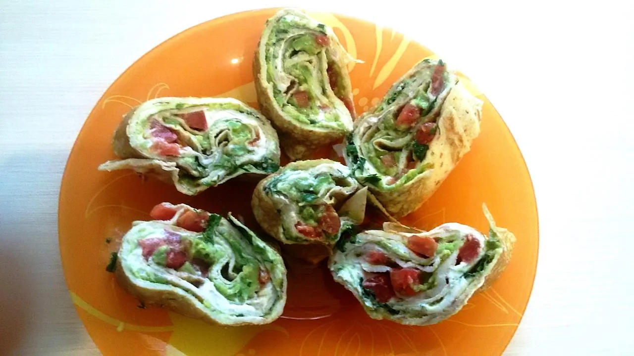 Ингредиенты для приготовления Яичный ролл с авокадо и зеленью: