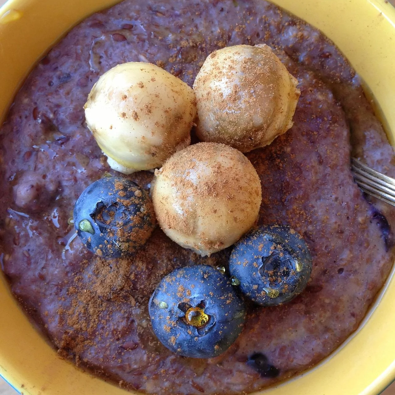 Овсяная каша с бананом, голубикой и кленовым сиропом