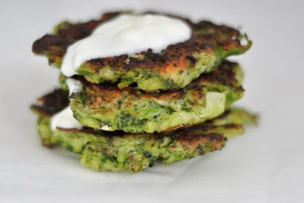 ШАГ 2 Отдельно взбейте яйцо, добавьте муку, соль, перец, сыр. Смешайте с брокколи. Разогрейте масло на сковороде, формируйте форму оладьев и жарьте с каждой стороны 3 минуты. Подавайте с йогуртовым соусом (смешайте 2 столовые ложки йогурта натурального, мелко порубите мяту, раздавите чеснок чеснокодавилкой и поперчите).