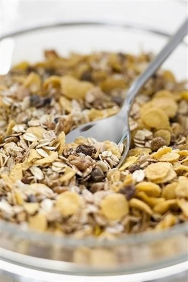 ШАГ 1 Для получения мюслей в домашних условиях надо взять овсяные хлопья, хлопья кукурузные, а далее — по вкусу — сухофрукты (мелко нарезать), орехи (любые, можно тоже помельчить), семечки (подсолнечные, кунжутные, тыквенные). Должно получиться примерно 1 часть хлопьев и 1 часть всего остального. Перемешиваешь — вот и мюсли.