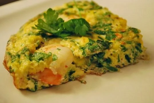 ШАГ 3 Разогрейте оливковое масло на сковороде, которую можно убрать в духовку. Когда появится пенка, влейте массу. Перемешайте яйца. И уберите в духовку минут на 5. Разогрейте духовку до 220 градусов. Взбейте яйца с солью и перцем, добавьте петрушку, лимонную цедру, сок и пармезан. Креветки добавьте к яйцам, часть из них можно нарезать на кусочки. В небольшой сковороде, пригодной для духовки, разогрейте оба масла до появления пены, влейте яичную смесь. На среднем огне аккуратно помешайте яйца в течение минуты, поставьте сковороду в духовку. Минут на 5, не пересушите! Посыпьте чили и подавайте.
