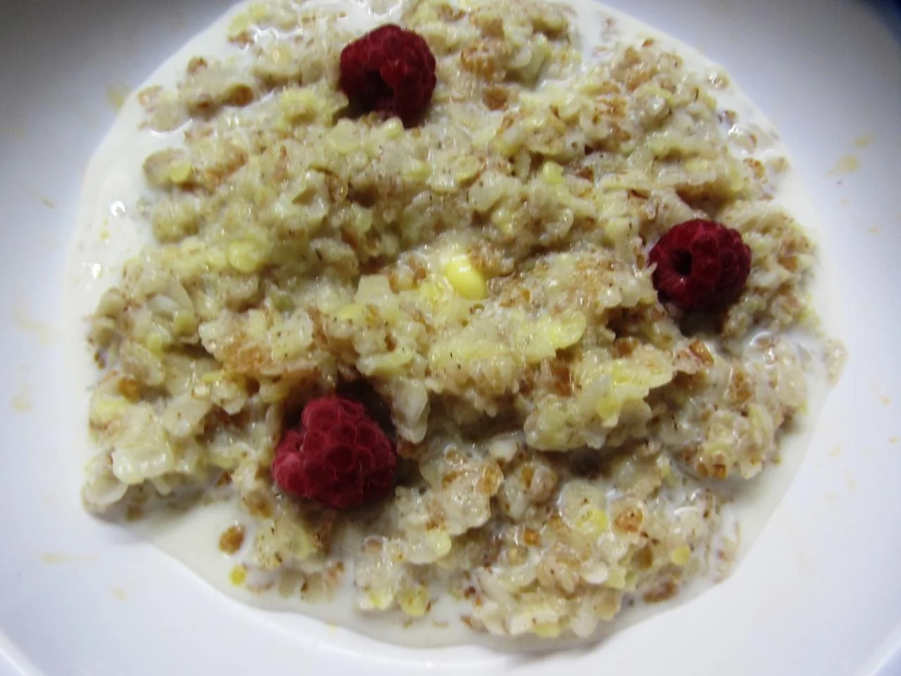 ШАГ 1 Геркулес выложить в чашу мультиварки, залить молоком.