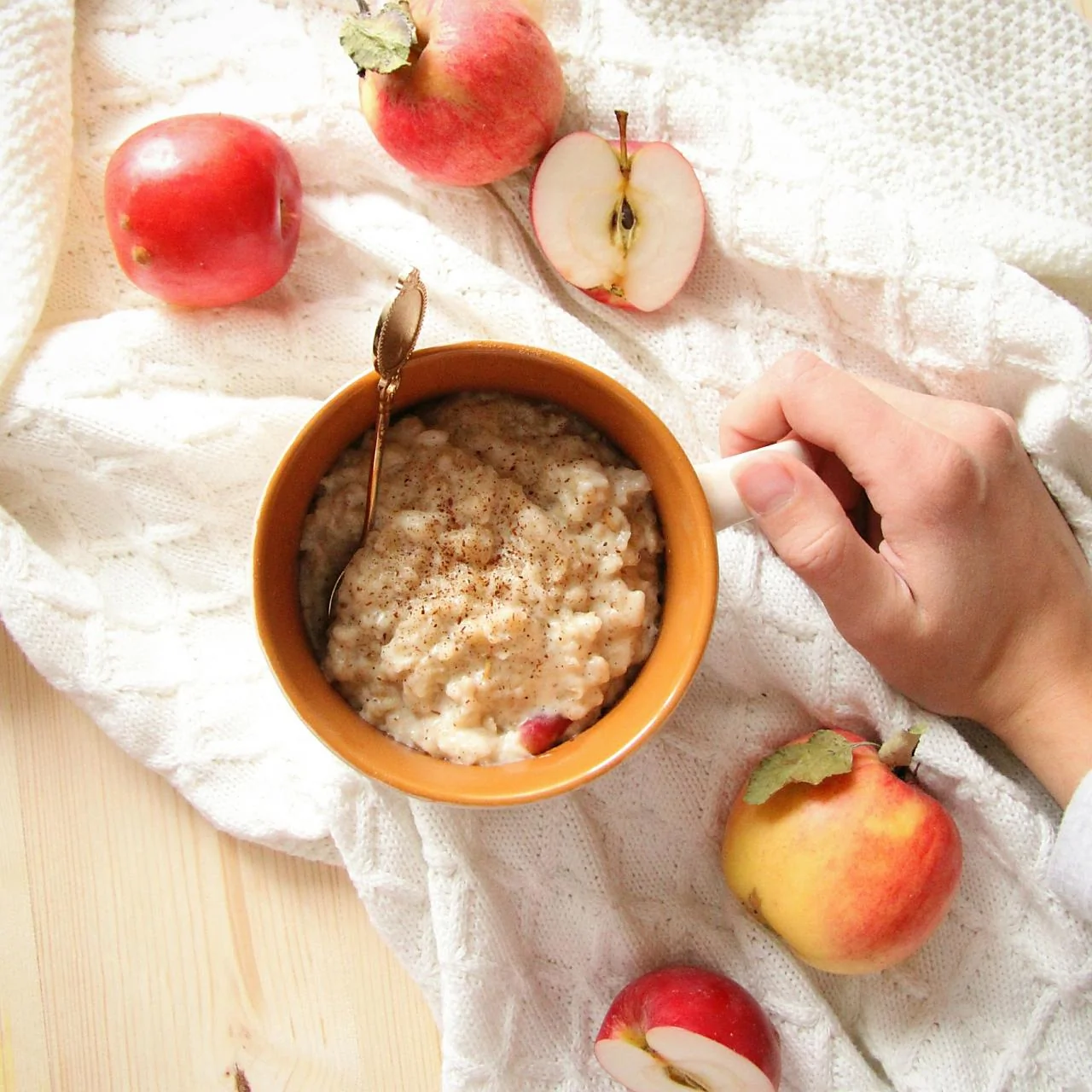 Овсяная каша с ванилью, яблоком и арахисовым маслом