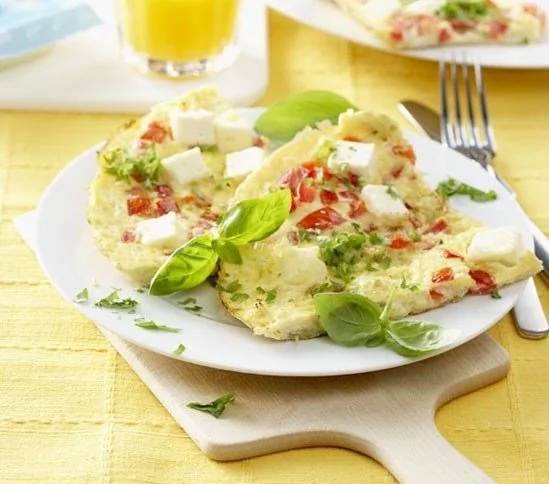 Ингредиенты для приготовления Омлет с беконом, помидорами, базиликом и орегано: