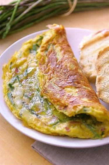 ШАГ 3 Слегка взбейте яйца со щепоткой соли в миске, потом добавьте спаржу. Разогрейте масло в сковороде, добавьте яйца и спарж и готовьте, пока нижняя часть омлета не пропечется. Потом переверните омлет – можно с помощью тарелки, или двух широких лопаток. И жарьте до полной готовности.