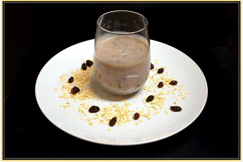 ШАГ 1 С вечера замачиваем изюм и овсянку в молоке или воде, чтобы жидкость чуть прикрывала смесь, и убираем на ночь в холодильник.