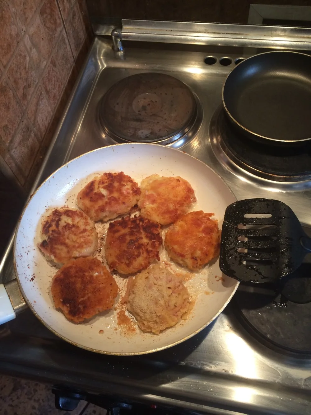 ШАГ 4 Обвалять в муке, сделать в виде биточков и пожарить их на сковороде.