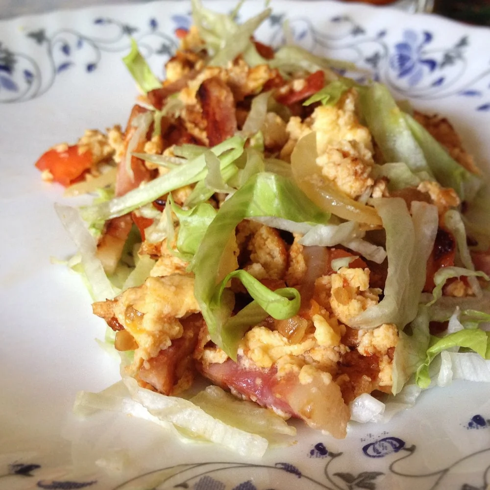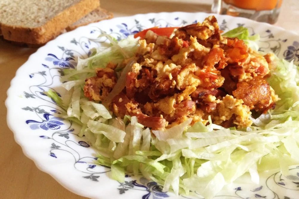 Омлет с ветчиной, помидорами и салатом айсберг