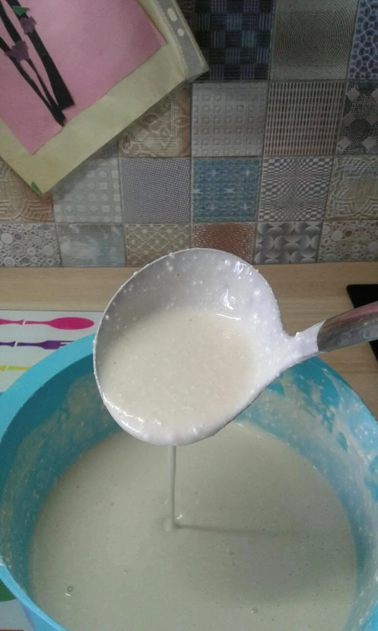 ШАГ 2 В оставшееся молоко добавляем соду, хорошенько перемешиваем. И соединяем с творожной массой. Все хорошенько взбиваем. Масса получается консистенции густой сметаны.
