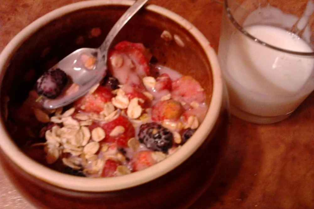 ШАГ 1 Овсяные хлопья залить кефиром.
