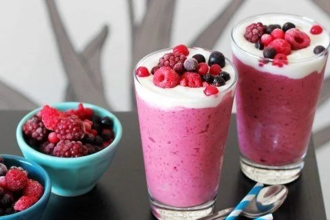 ШАГ 1 Смешать в блендере ягоды, банан и творог.