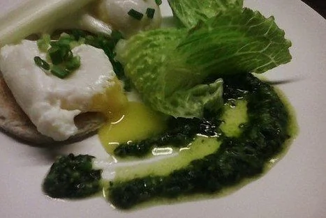 Яйцо пашот на тостах с соусом песто и сельдереем