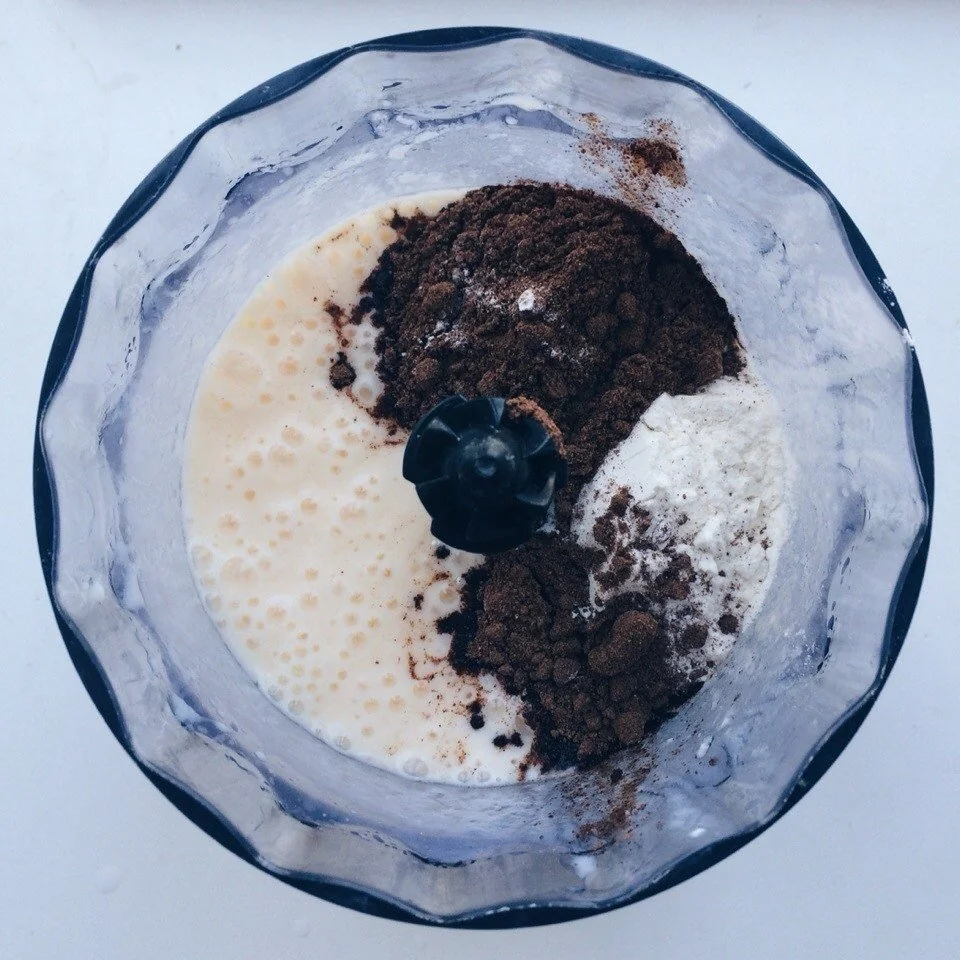 ШАГ 1 Смешиваем в блендере кефир, яйцо, соль и подсластитель.