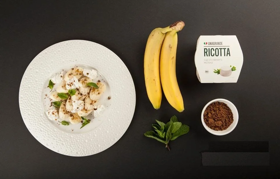 Ингредиенты для приготовления Бананы с рикоттой Unagrande на завтрак: