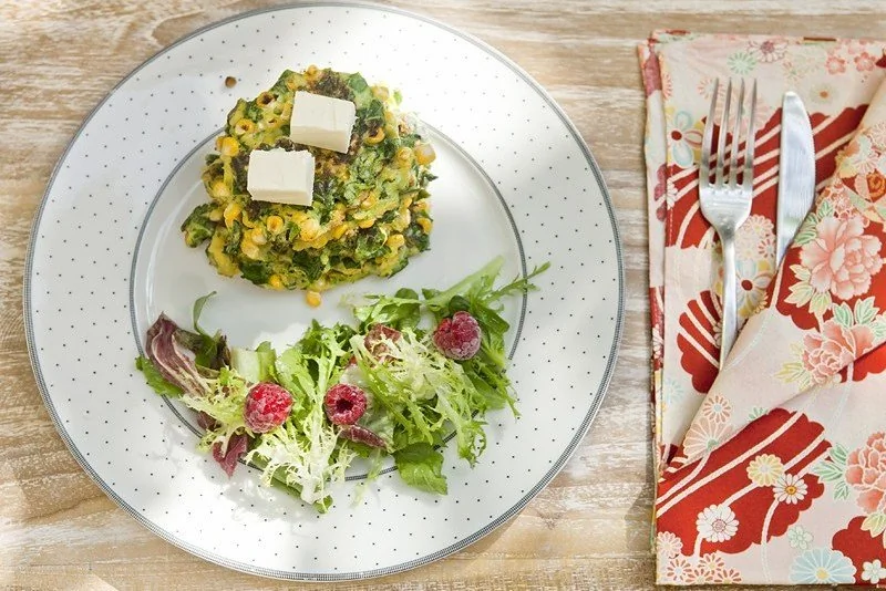 ШАГ 1 Молодой и нежный цукини без семечек натереть на терке. Срезать острым ножом зерна с початка кукурузы, я использовала сладкую кукурузу, которая быстро готовится. Ее можно заменить на консервированную. Листья шпината промыть, удалить стебли, мелко нарезать.