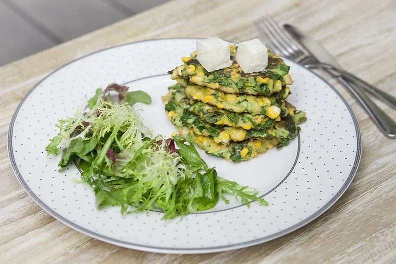 Ингредиенты для приготовления Кукурузные оладьи с овощами и сливочным сыром:
