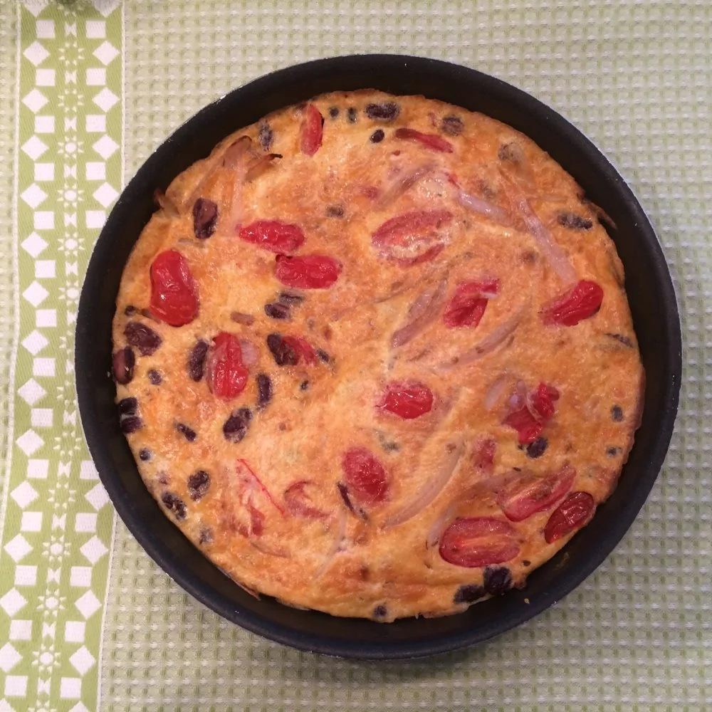 Фриттата с шалотом, помидорами черри и красной фасолью