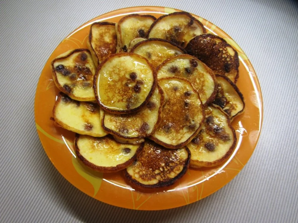 ШАГ 4 Пока готовые оладьи остывают на бумажной салфетке (и отдают ей лишний жир), а следующая партия жарится, в отдельной пиале смешиваем мед с апельсиновым соком (на 2 чайных ложечки меда отжать несколько долек половинки апельсина). Готовым соусом промазываем каждый готовый оладушек.