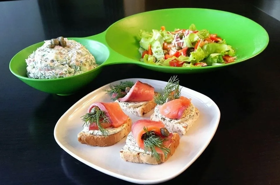 Ингредиенты для приготовления Тосты с зеленым маслом и семгой: