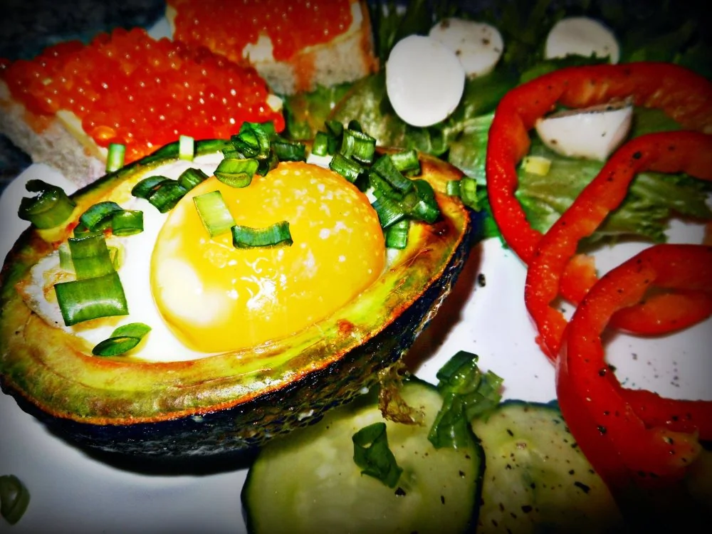 Запечённое в авокадо яйцо с сыром