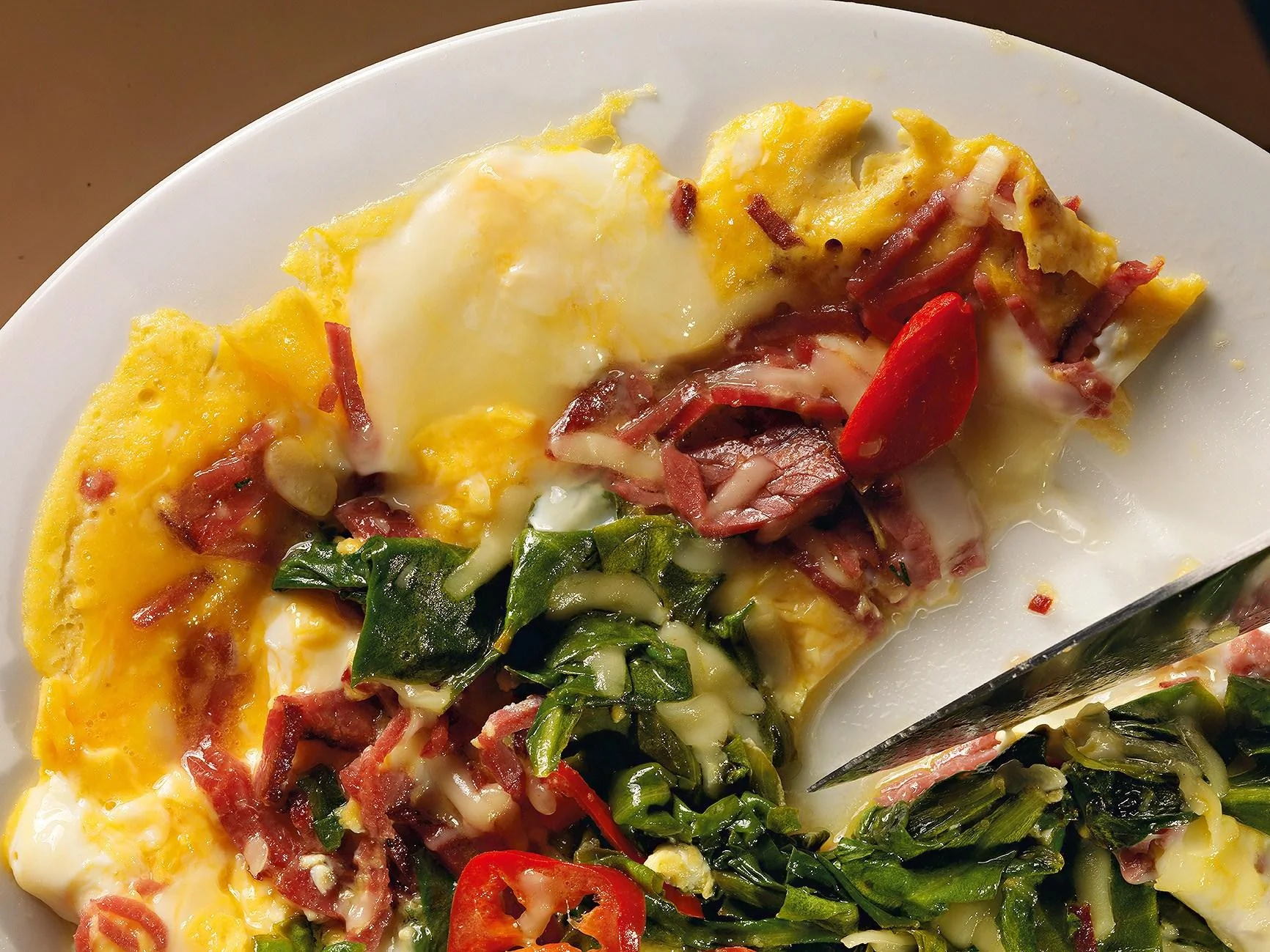 Ингредиенты для приготовления Омлет с бастурмой и шпинатом: