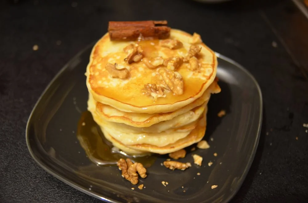 ШАГ 5 Оладьи подать горячими, тёплыми или остывшими с любым топингом (я подала с мёдом и орехами пекан), посыпав корицей по желанию (палочка корицы на фото исключительно в целях украшения).
