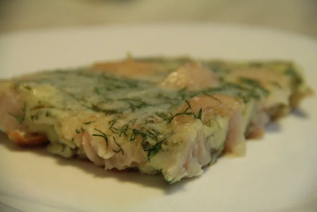 ШАГ 4 Вливаем получившуюся смесь на сковороду, на которой жарится рыба, солим по вкусу и накрываем крышкой.